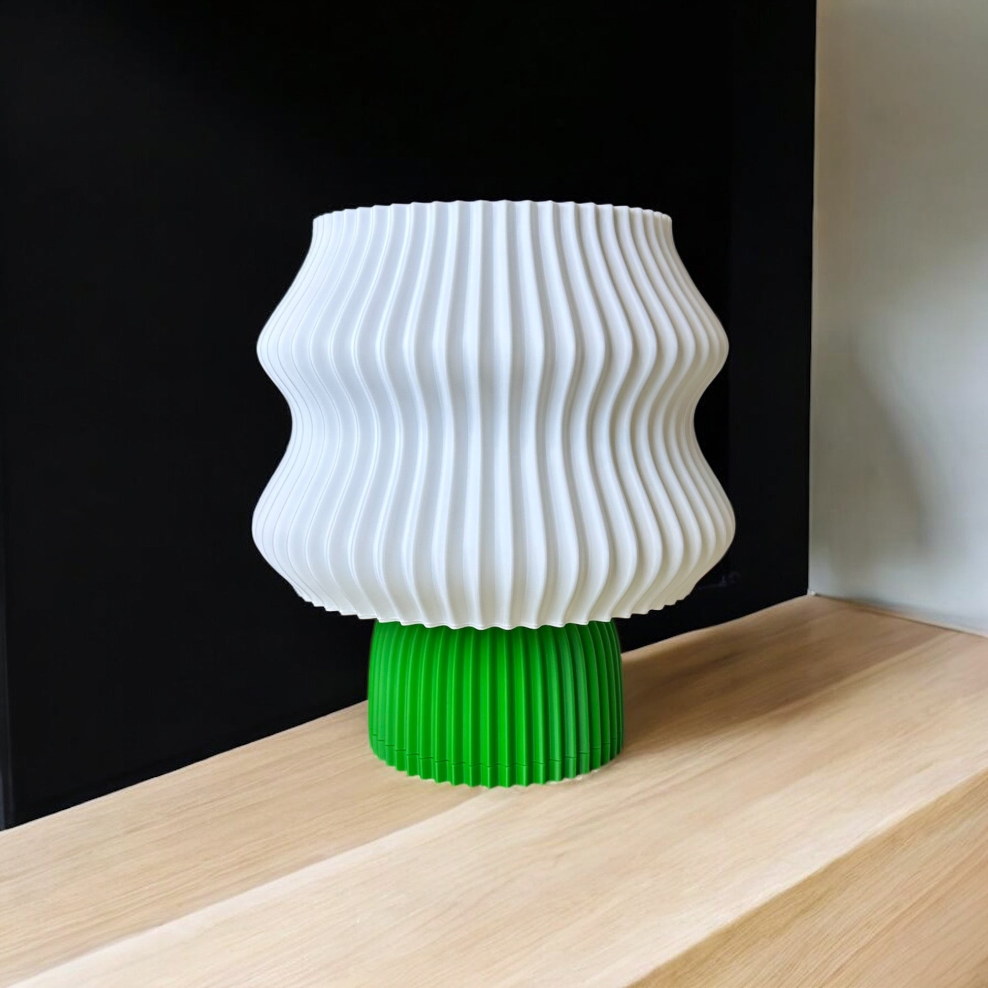 Kabuk Factory olarak tasarlayıp ürettiğimiz bu dalga formlu masa lambası, zarif beyaz abajur kısmı ve canlı yeşil tabanı ile dekorasyonunuza enerji katar.