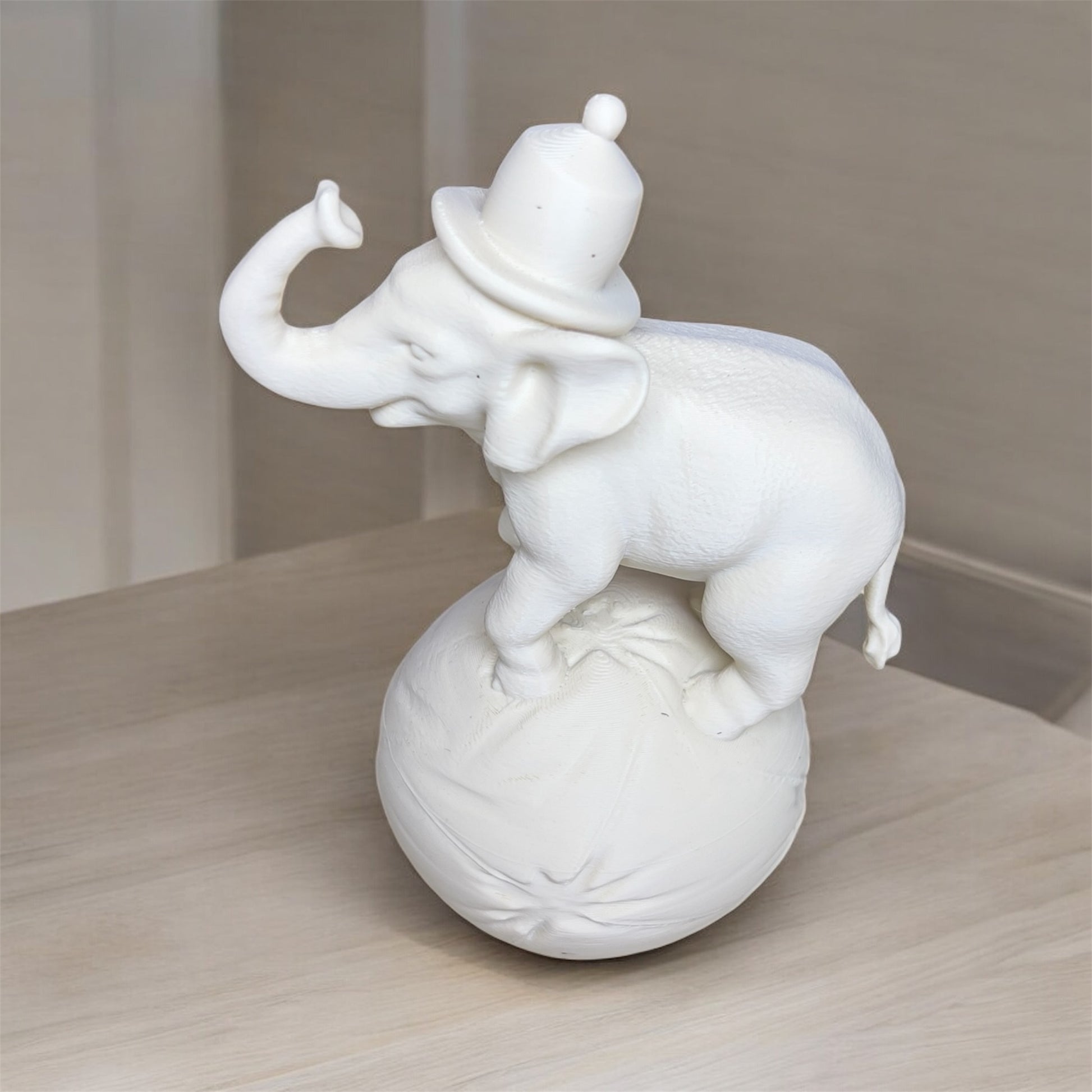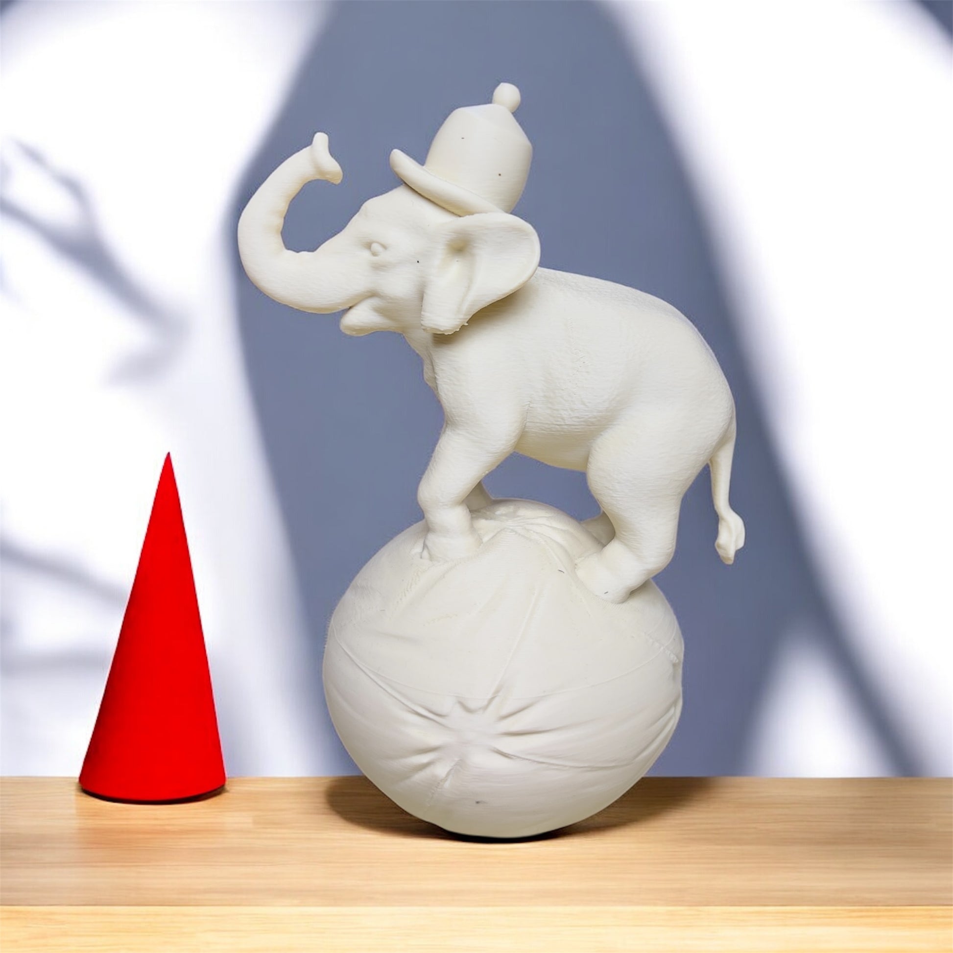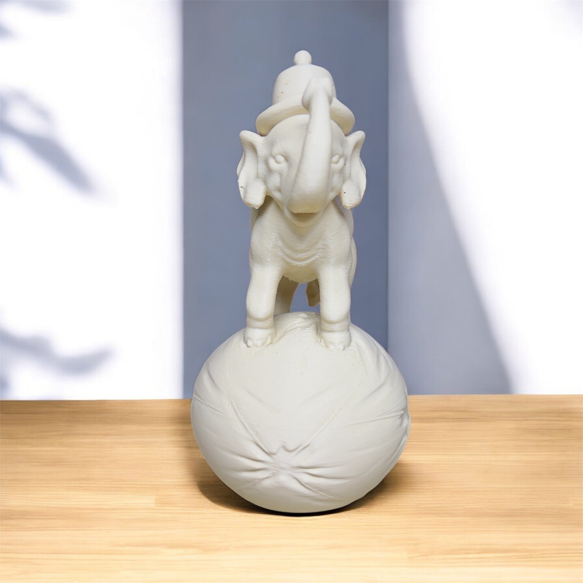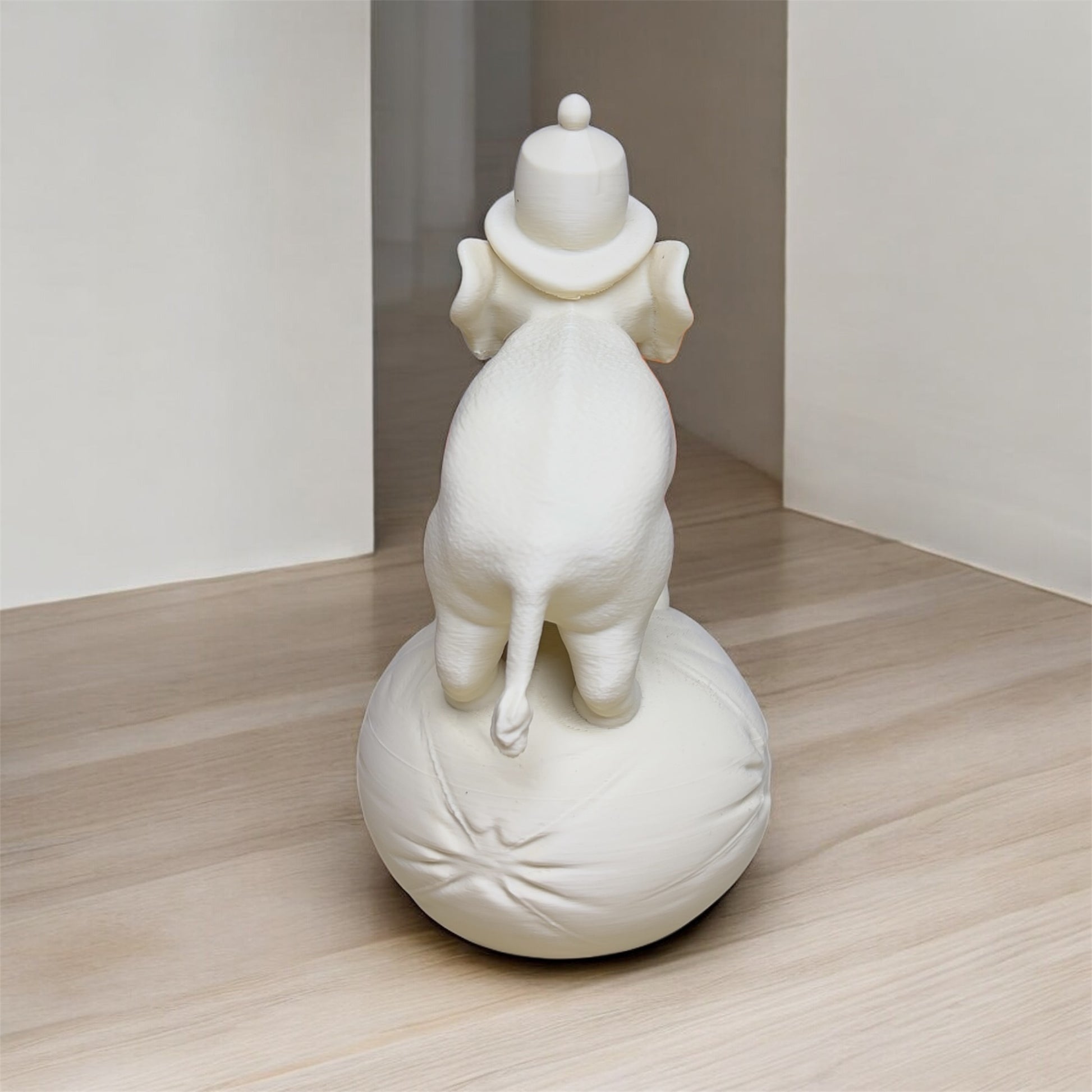 - Tasarım Tipi: Şapkalı fil & kumaş top üzerinde denge figürü