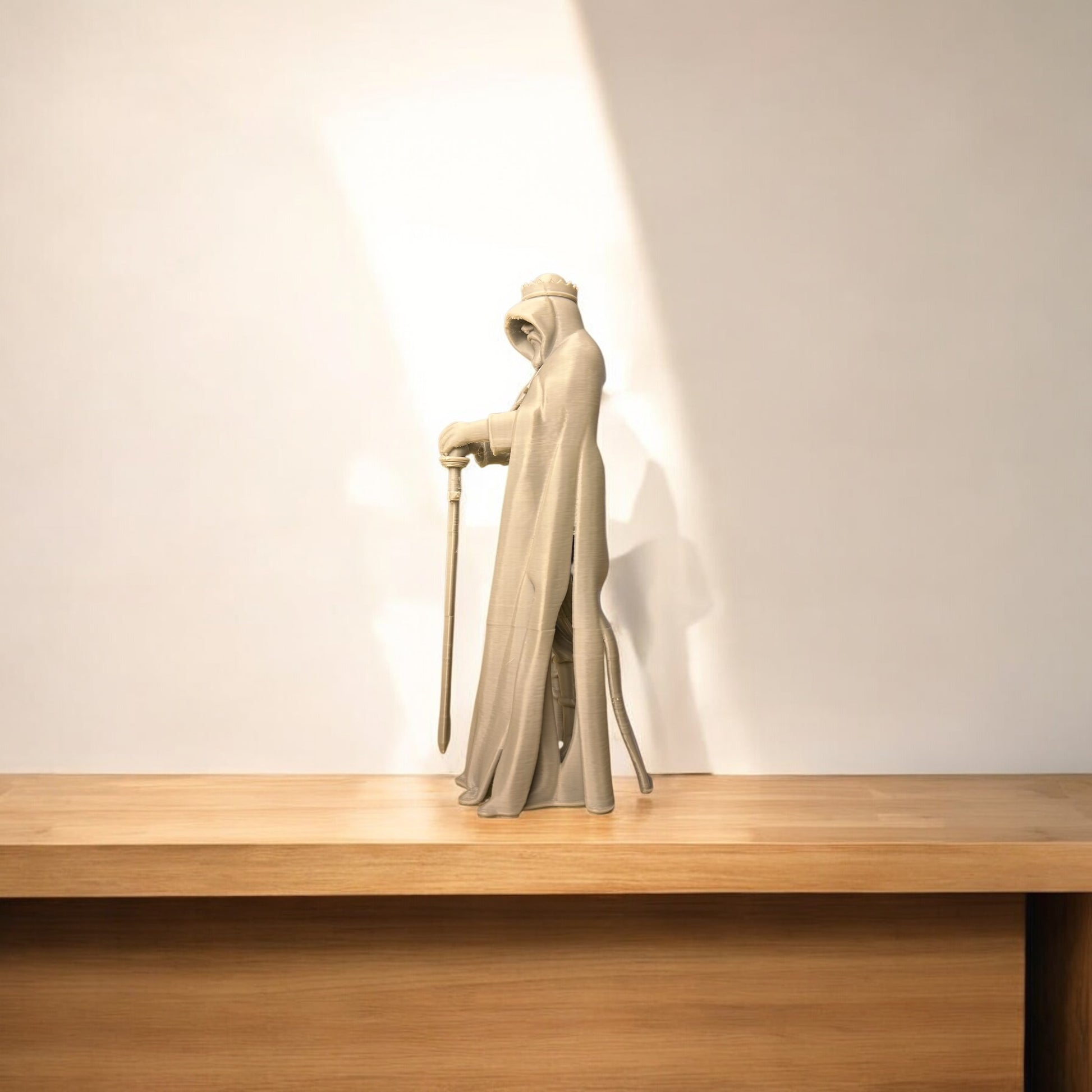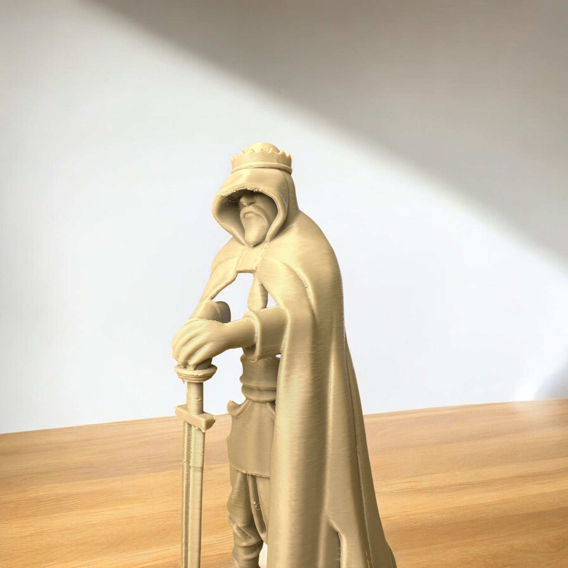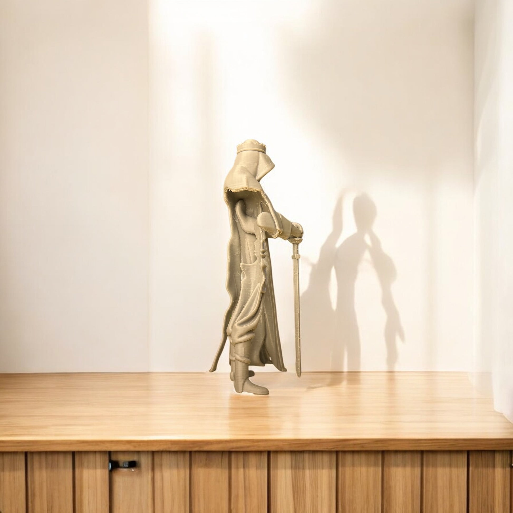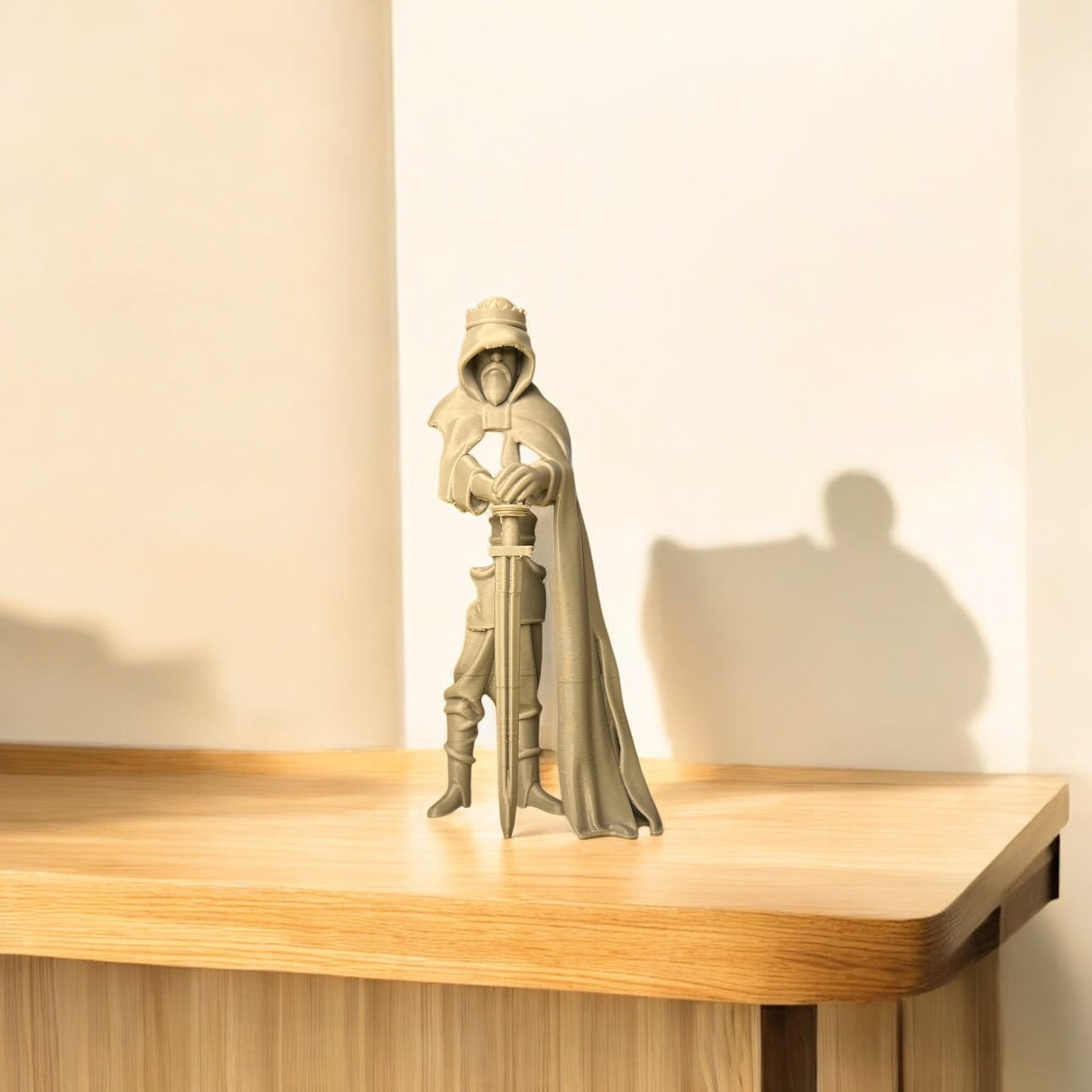Orta Çağ’ın gizemli kralı Arthur’un görkemli duruşunu yansıtan bu 3D baskı heykel, Kabuk Factory tarafından özenle tasarlanıp üretilmiştir. Kılıcına yaslanmış, pelerinli haliyle güç, liderlik ve karizmayı temsil eden bu figür; hem koleksiyoncuların hem de dekorasyon tutkunlarının ilgisini çekecek eşsiz bir parçadır.