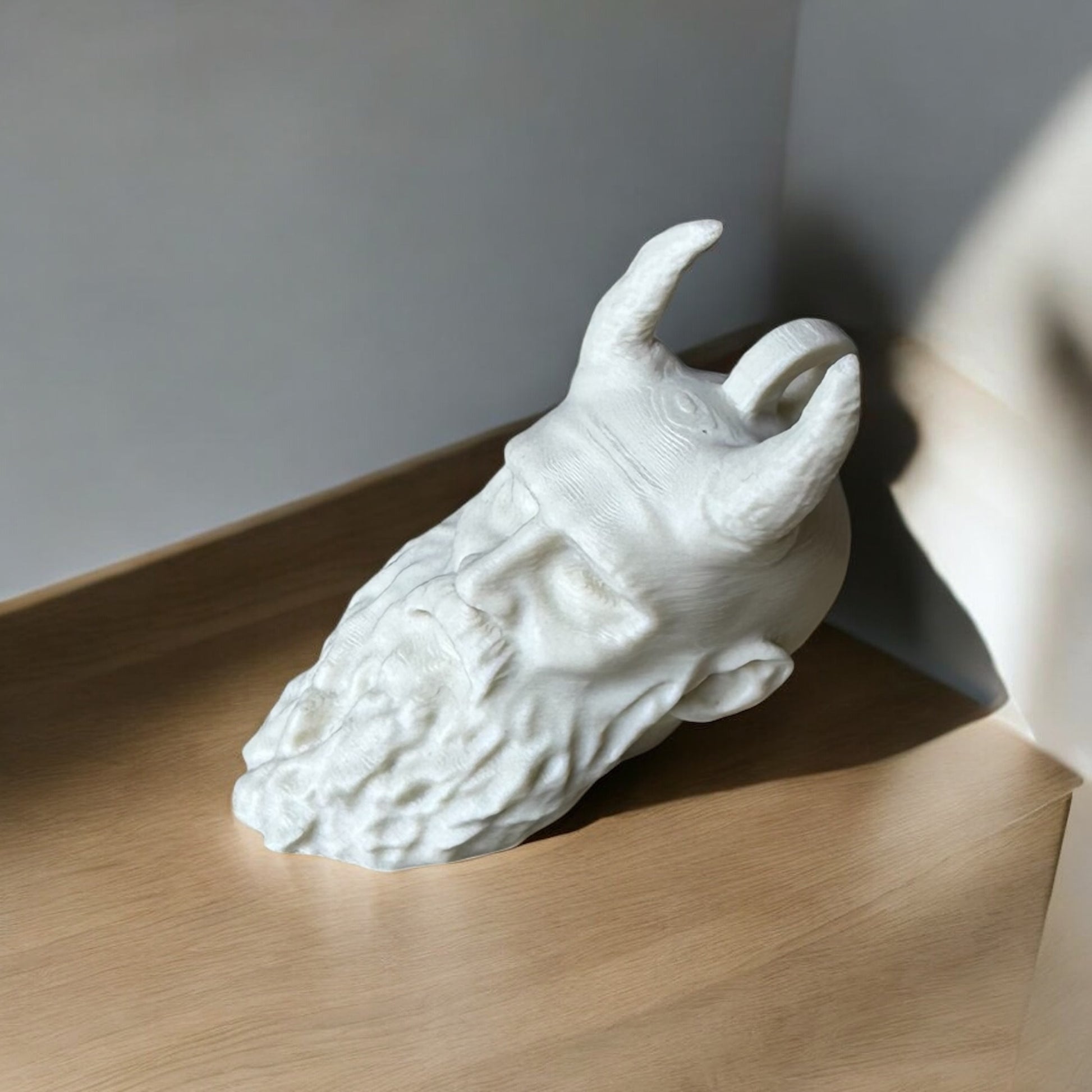 Boynuzları, detaylı sakalı ve asık suratıyla bu büst; hem sert hem stil sahibi bir dekoratif obje, hem de farklı tasarımıyla koleksiyonluk bir anahtarlık.