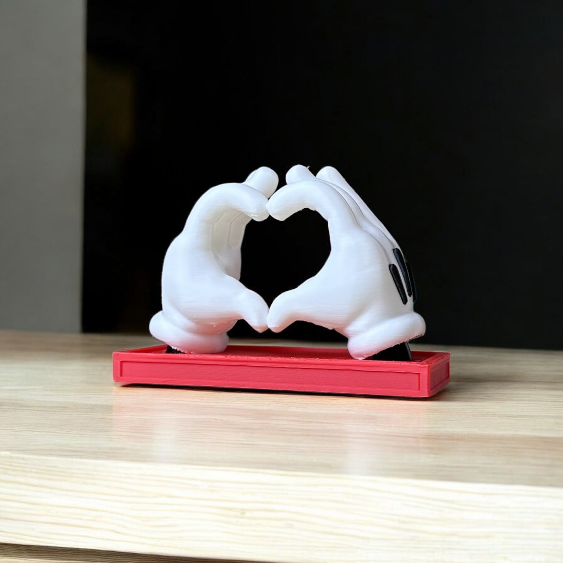 Kabuk Factory tarafından tasarlanan bu 3D baskı heykel, çizgi film dünyasının ikonik el formunu kalp hareketiyle birleştirerek neşeli ve romantik bir dekor sunuyor. Kırmızı platformu ve dikkat çeken tasarımıyla ister hediye, ister masa üstü aksesuarı olarak mükemmel bir tercih.